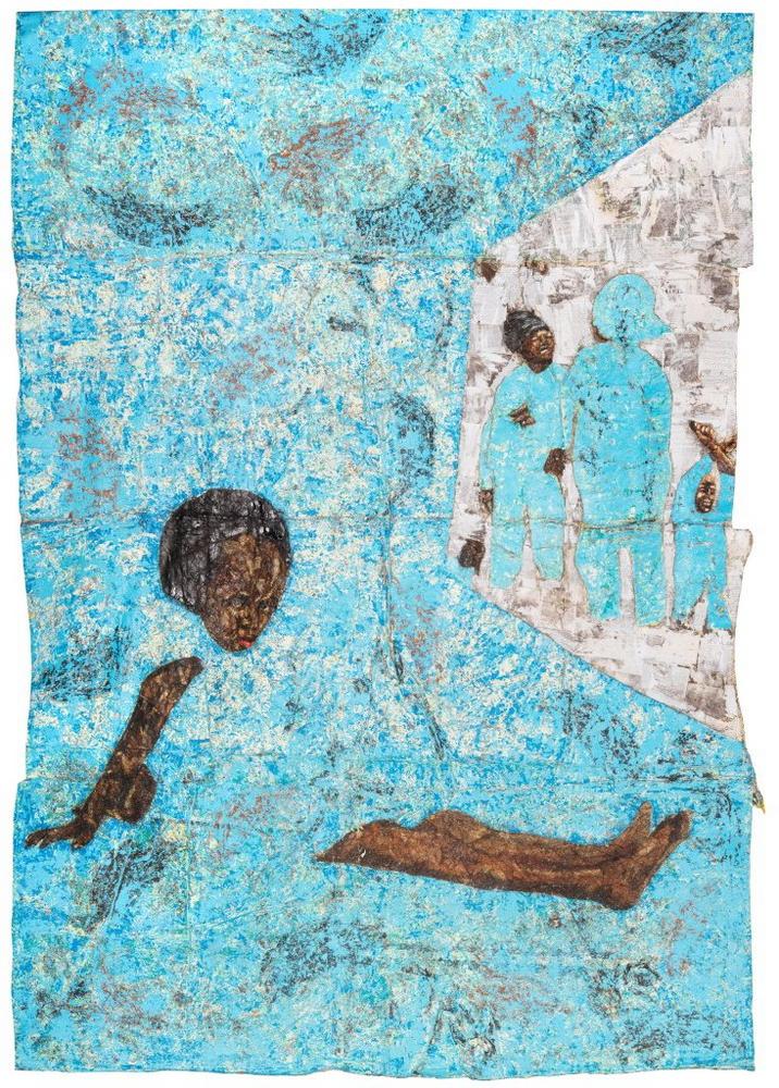 Der kenianische Künstler Kaloki Nyamai (1985 in Kitui) entwickelt in seinen Gemälden und raumgreifenden Installationen kraftvolle Bildwelten, in denen sich traditionelle Bildreferenzen mit zeitgenössischen Perspektiven verschränken. Durch vielschichtige Kompositionen und die bewusste Überlagerung von Formen, Symbolen und Materialien hinterfragt Nyamai historische Narrative und schreibt sie aus einer dezidiert gegenwärtigen Sicht neu fort. Im Calder-Saal des
